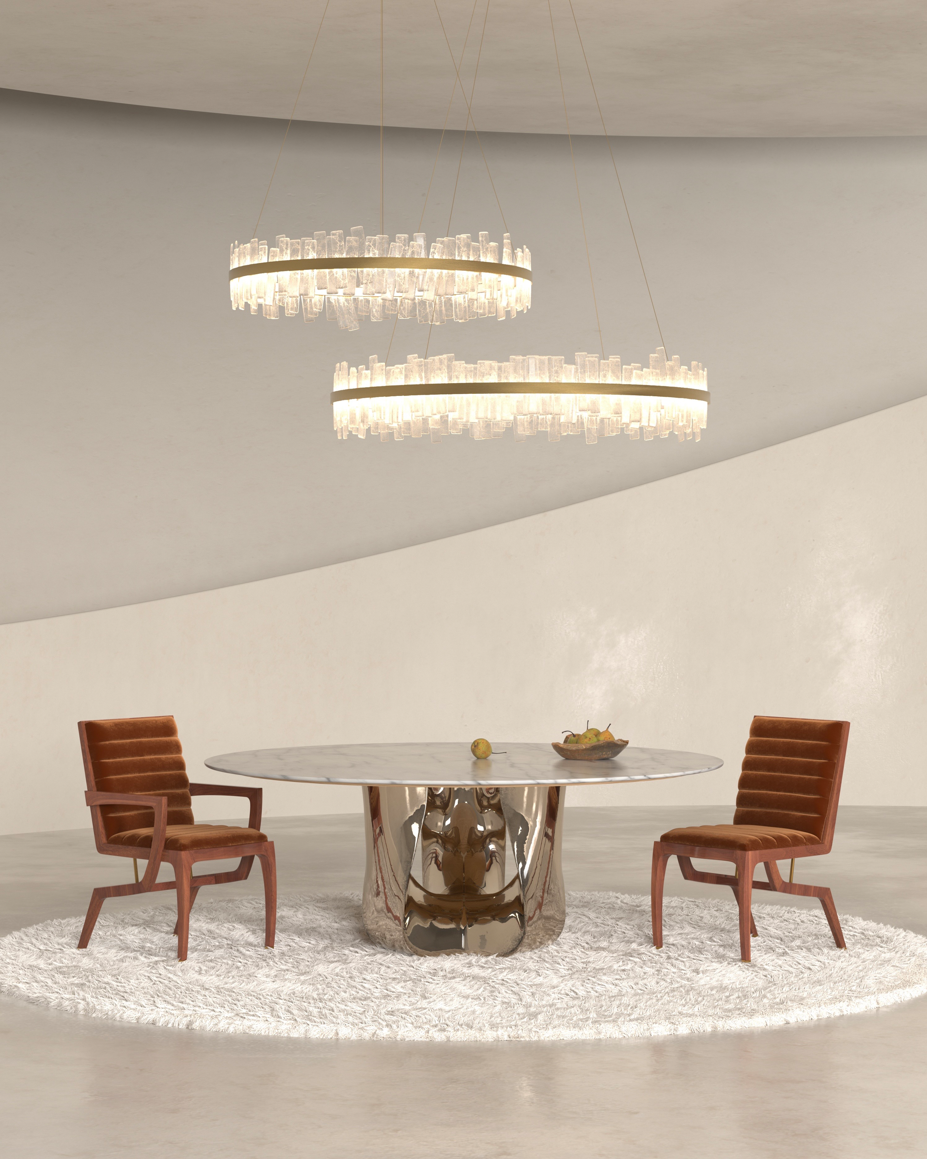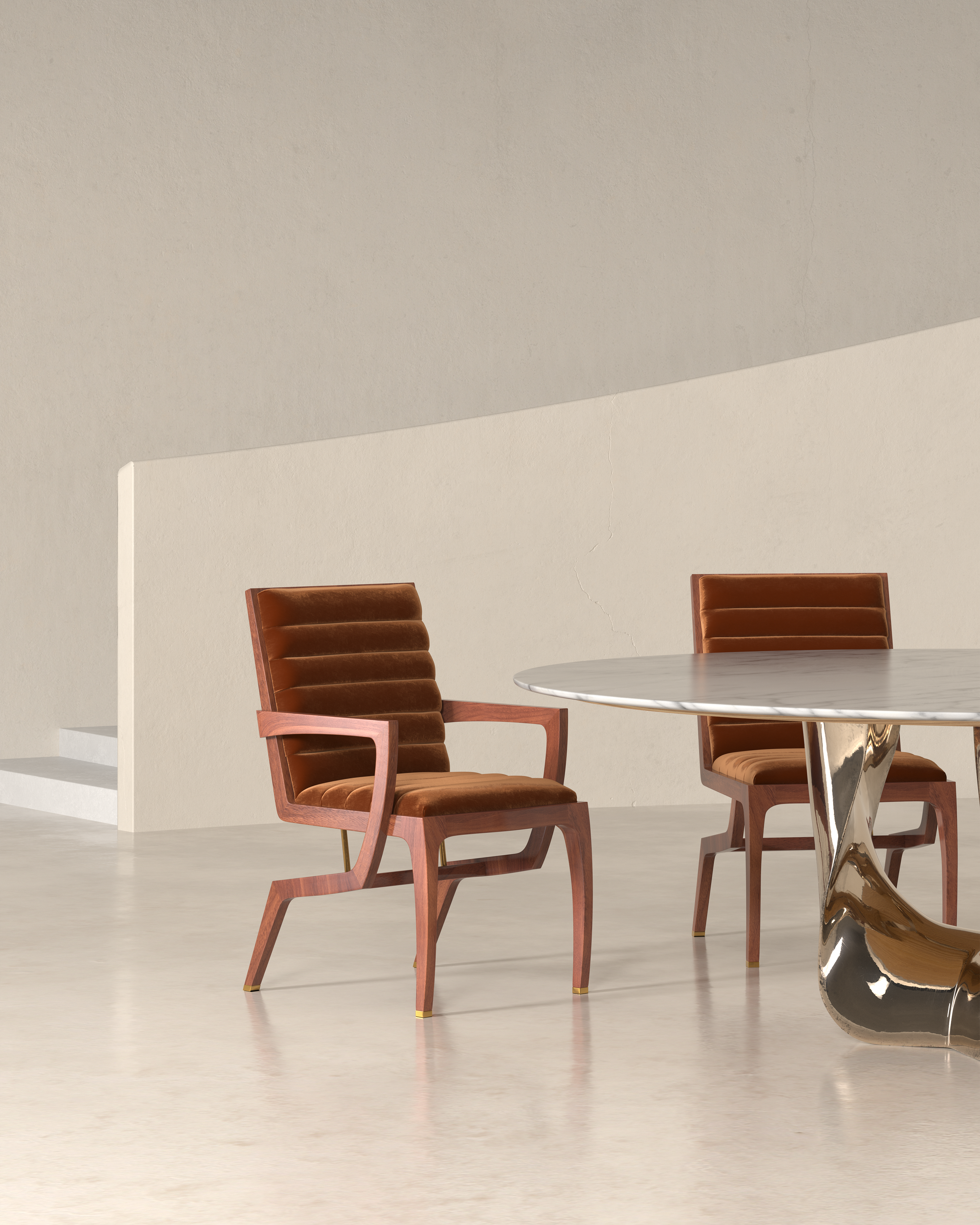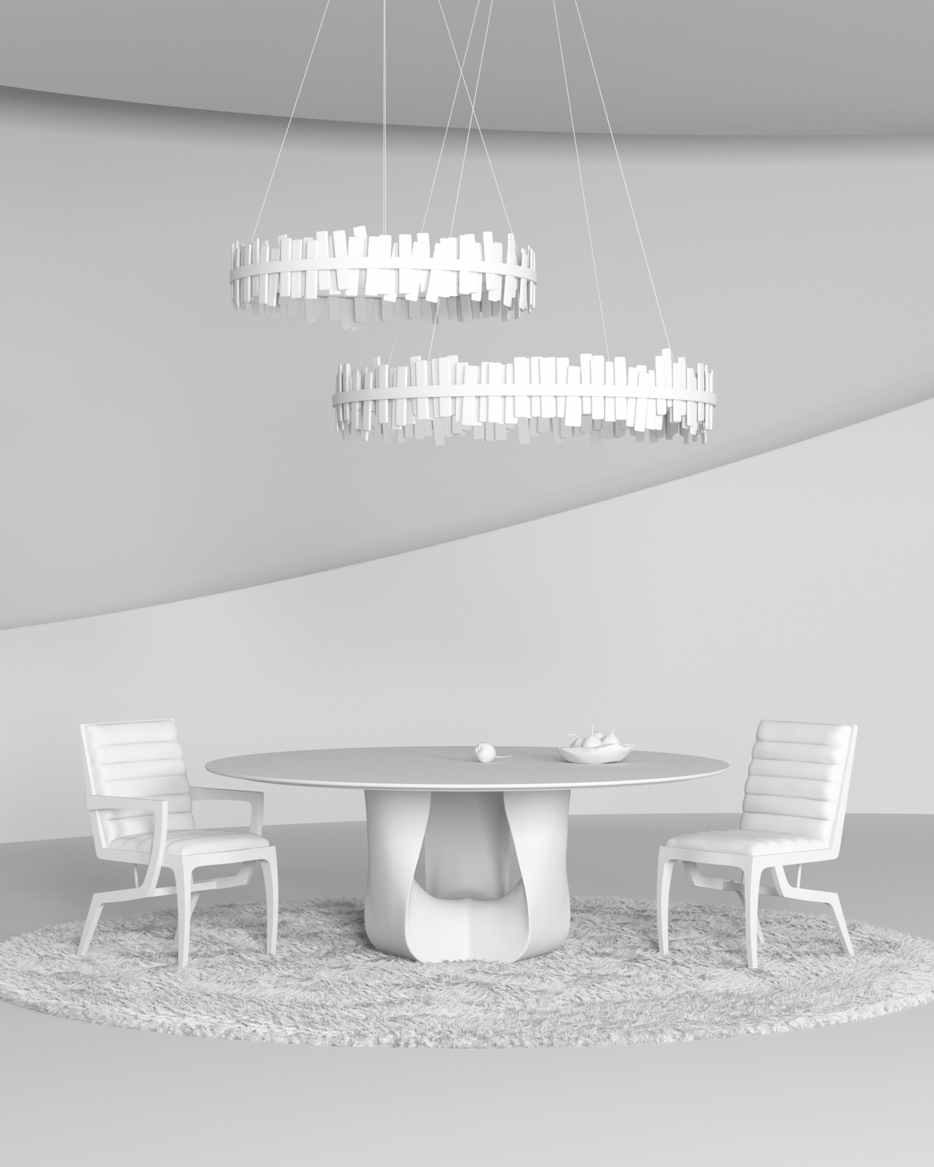 The visual system prioritizes realism and consistency, with careful control over proportions and light response to ensure that each piece is represented with clarity and precision. The resulting imagery translates sculptural furniture forms into production-ready visuals suitable for branding, presentation, and editorial contexts.