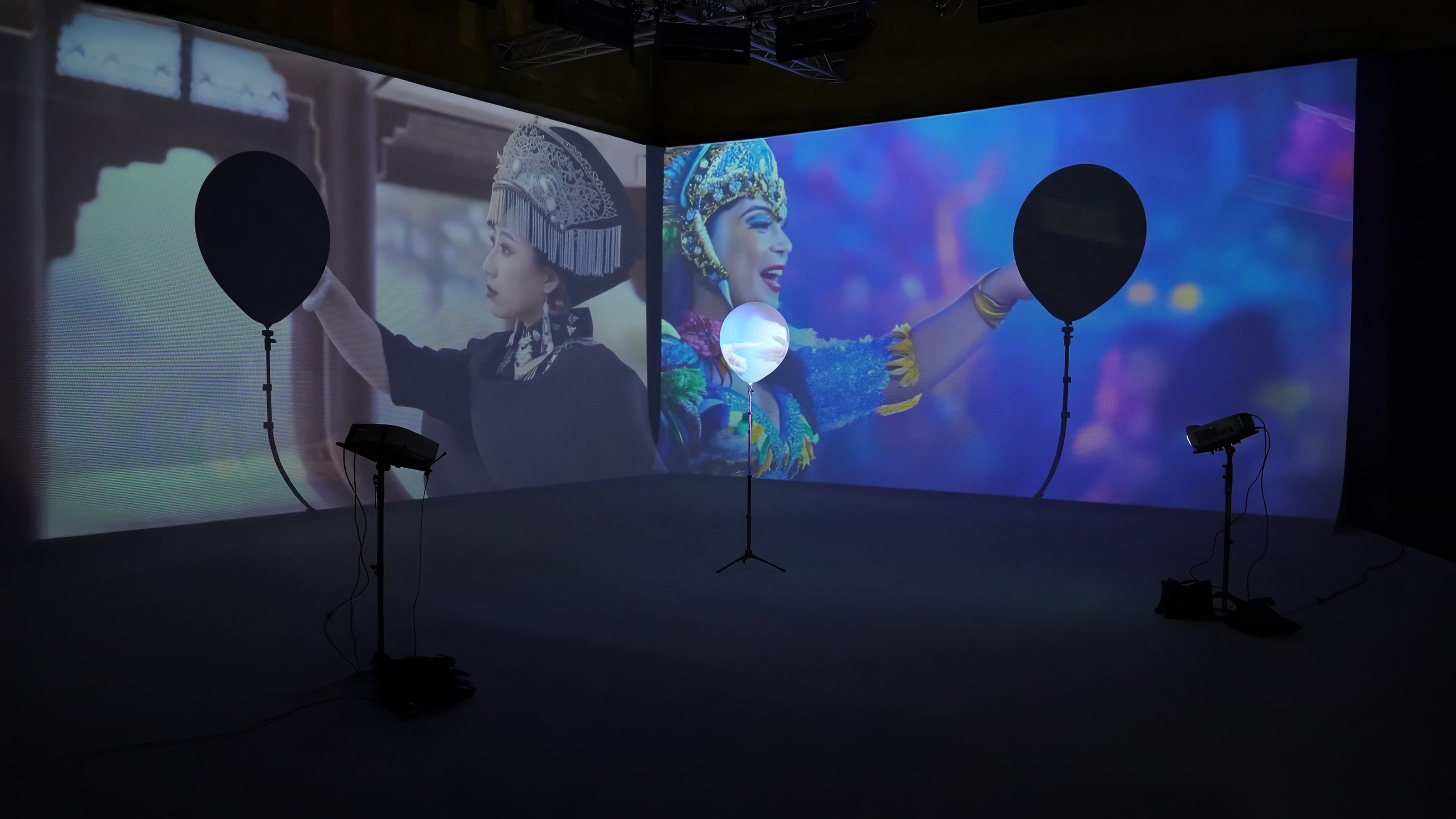 Through this arrangement, two originally unrelated projection spaces were brought into spatial intersection.